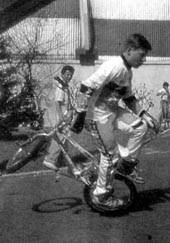 Numéro 81 - septembre 1989 (1) (scanned by Ludovic Lubert 0811 - download) Open Master Nada #3 à Oleron News: Début juillet 89, Robert Berthet du BC de Grenoble organise le Free Sensation 89, un tour des Alpes avec un team de quatre freestylers bien rodés avec Mamie Fauche, Oliver "tortue" (Vergoby ?), les Lancosme brothers et Jean Somsois. Underground: Kevin Jones exécute une sorte d'hang five, le guidon en x-up, les deux pieds sur les pegs en retirant les mains. |